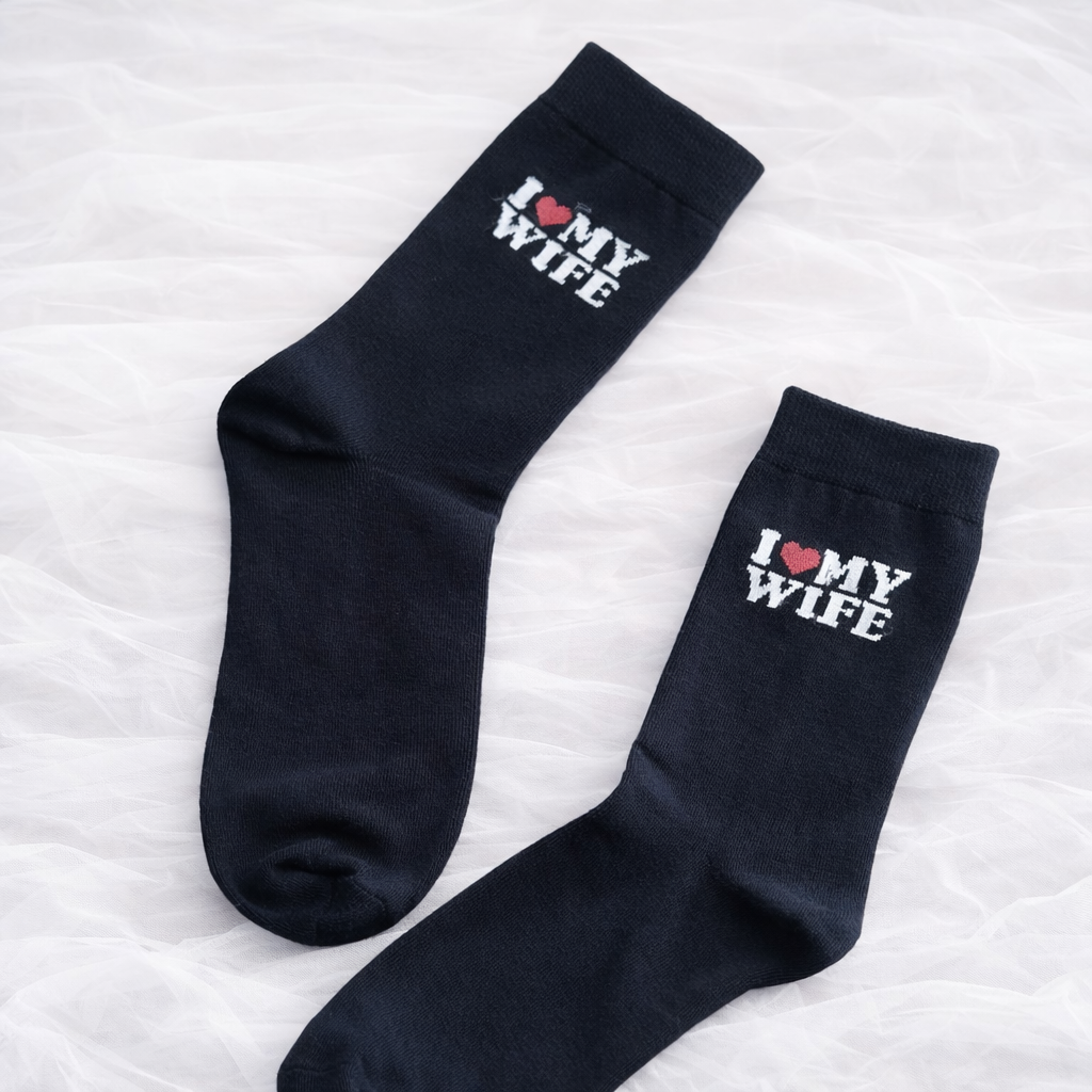 • Une paire de chaussettes « I Love My Wife », toute douces.